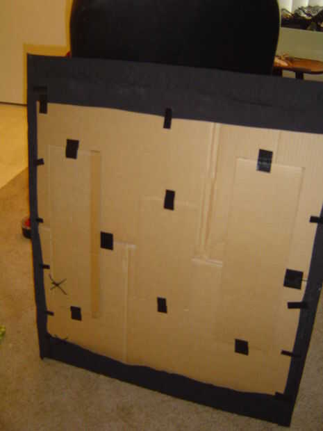 Alinear para formar una forma cuadrada y con cinta adhesiva en ambos lados. Tres 6" tiras ancho de las aletas laterales y pegar a un lado a través de la costura para reforzar la Junta. Asegurar con alguna cinta de los extremos de cada tira presionado mientras el pegamento seca.