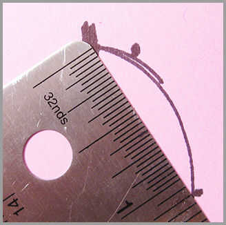 Coloque su regla para que el marcador de comienzo de la misma se centra en la línea de la libertad bajo fianza. Ángulo de la regla que sigue la curva de la derecha del óvalo. Marca un punto en el papel donde el ¼" marca conoce a borde del óvalo.