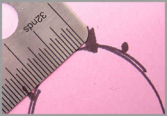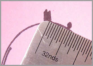 Coloque una regla de modo que el borde recto en el ovalo, cerca de la cima, en el punto donde es 1" de ancho. Deberá deslizar la regla alrededor un poco para encontrar el lugar adecuado.