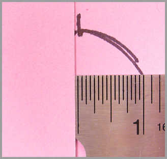 Coloque otra pieza de papel u otro objeto con un borde recto en la marca ½' perpendicular a la regla. Marque el punto donde el borde se cruza con la parte superior del óvalo.