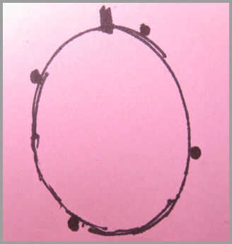 En el papel, tenga en cuenta que los cables se montarán en ese momento. 2 4" cables se montarán en los lugares más cercanos a la parte superior y la parte inferior del óvalo. Los cables de 6" se unirá a los lugares más cerca del centro del óvalo...