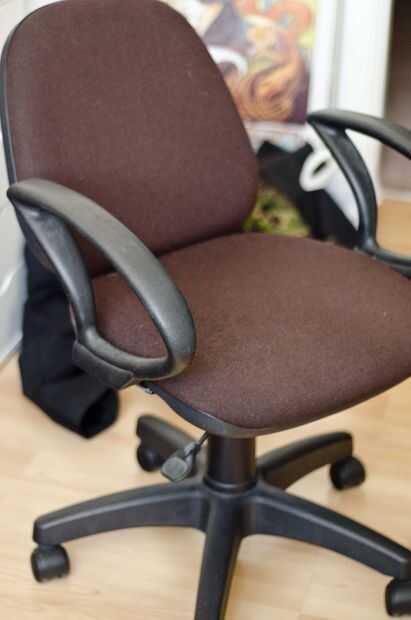 Al hacer nuestro espacio de estudio ideal, me quedé mirando nuestras sillas de escritorio antiguo en consternación. Mientras que trabajaban perfectamente, la áspera, fea tela marrón que fueron tapizados con era simplemente inaceptable en nuestro espacio nuevo, hermoso. Decidí que necesitábamos los Tapice, y después de un viaje rápido a la tienda de tela y un par de horas con una pistola de grapas, tuvimos un par de sillas de escritorio nuevo por unos cinco dólares! Fue super rápido, fácil y totalmente había transformado nuestro estudio.