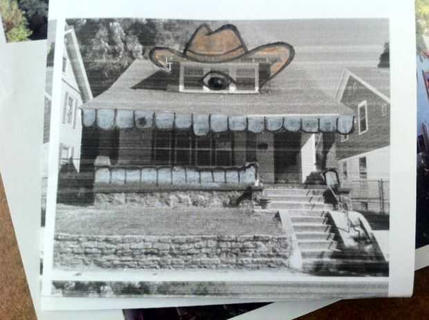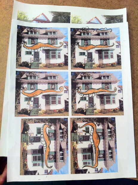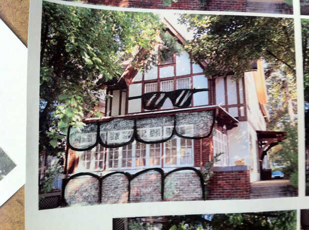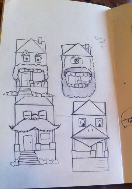 El primer paso es tomar fotos de la casa que está trabajando y sacar algunos bocetos. Imprimí un par páginas digno de fotos para poder dibujar directamente sobre ellos y tener varias ideas para jugar con. Ayuda si bajar la opacidad en las imágenes para que pueda ver sus dibujos mejor.