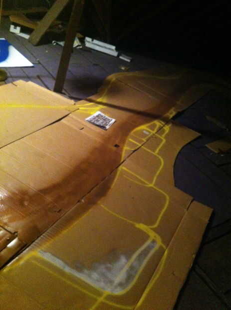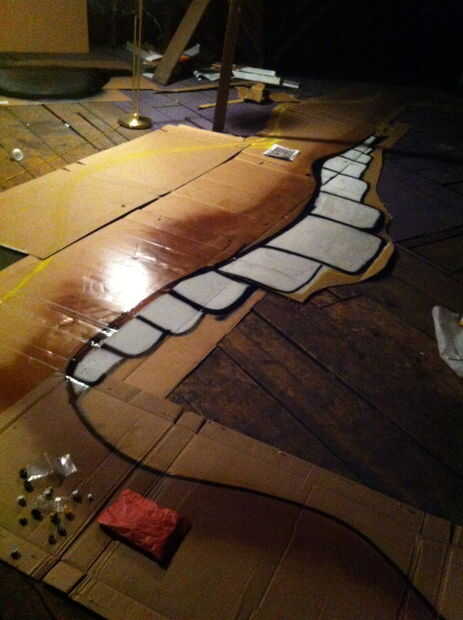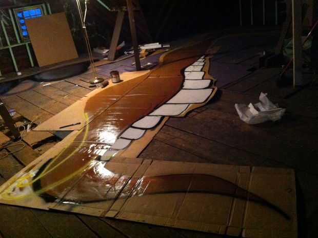 Comencé por trazar un contorno áspero del bigote usando pintura en aerosol. Use un color claro como azul amarillo o ligero ya que nos permite pintar sobre ella sin ninguna de sus líneas iniciales a través de. Como se puede ver, tengo la forma del bigote más los dientes pintados.