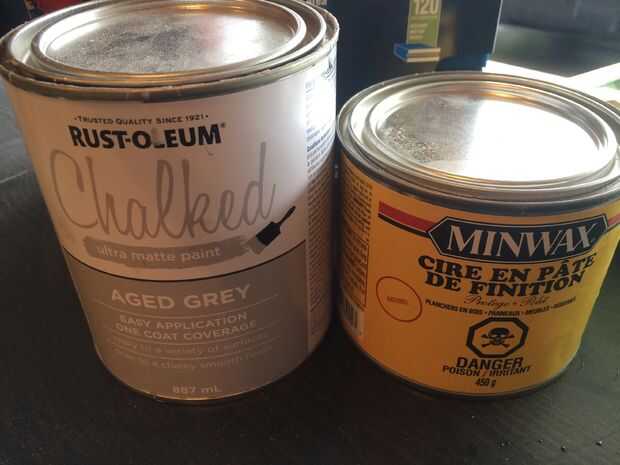 Sé que hay un montón de pinturas de tiza de boutique en el mercado ahora mismo, pero quería probar algo que es barato y disponible para todo el mundo. Así que fui a Home Depot para ver lo que he podido encontrar. No había como una amplia selección de colores como las boutiques, pero está disponible en unos colores del tinte. Elegí la gris envejecido.