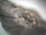 A continuación, busca signos de fusión - la partícula debe parecerse a una gota congelada de negra o gris, probablemente con una superficie corroída. Puedes tener suerte y obtener una gota casi esférico.