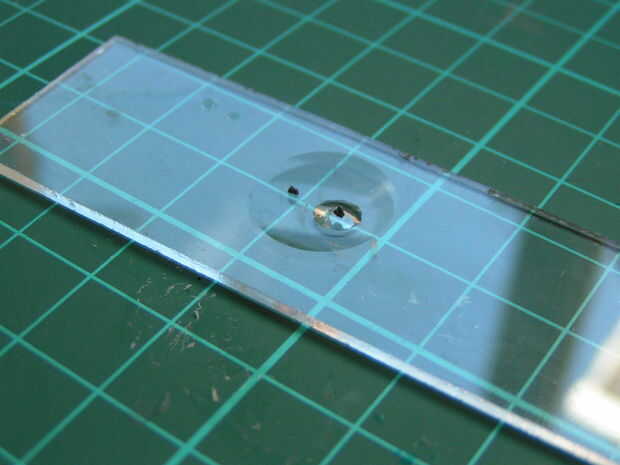 La primera cosa a hacer es dejar la diapositiva. Quieres los micrometeorites a secar, pero si utilizas cualquier tipo de soplar para secarlas, se corre el riesgo muy real de ellos sopla lejos.