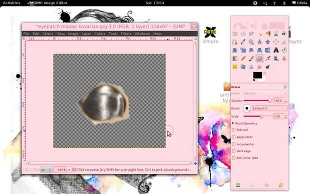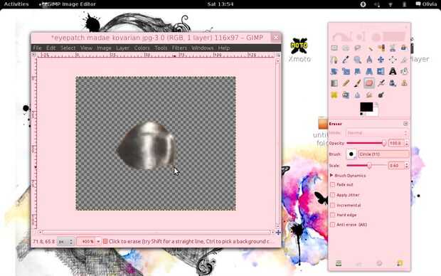 Borrar todo el EyeDrive hasta que tenga un buen ojo suave sobre un fondo transparente.