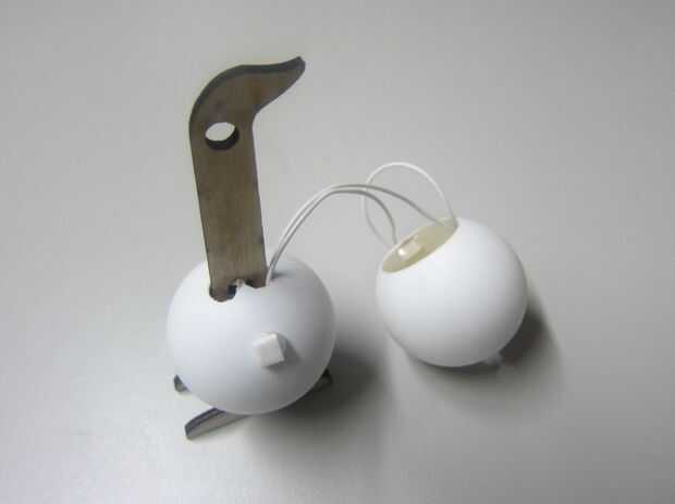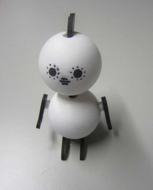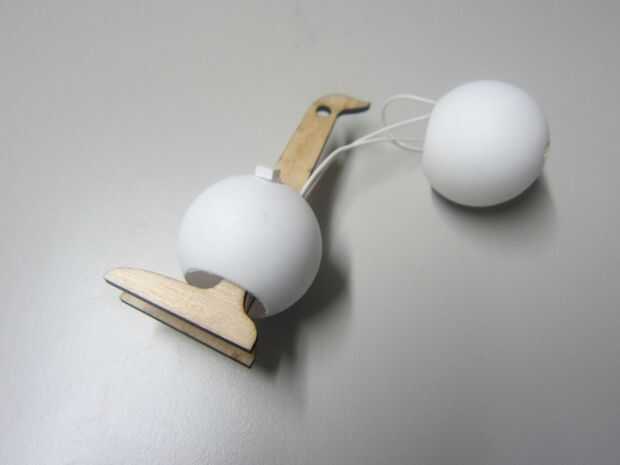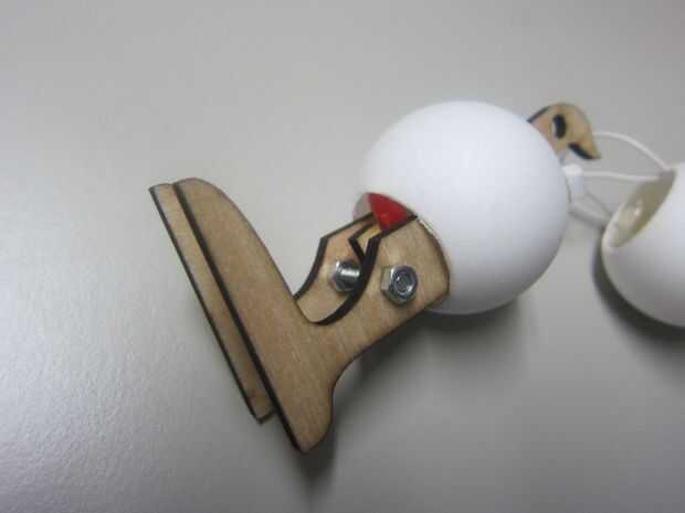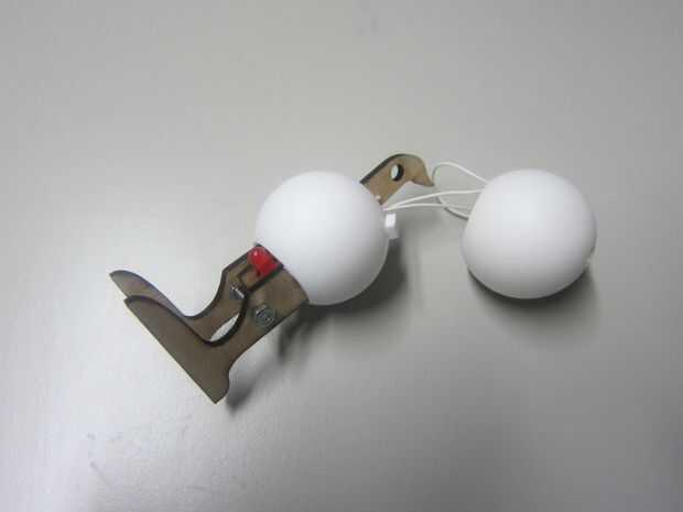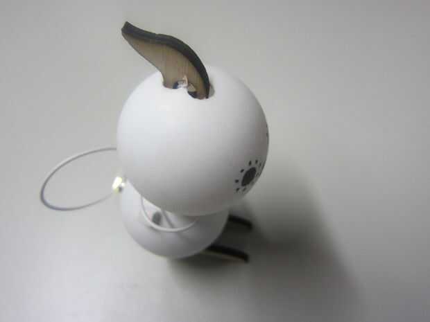 Llevar la parte superior de la parte del cuello en la bola del cuerpo y lo puso a través de los orificios superiores de dentro a fuera. Para hacer esto es forzar los extremos de "puente" entre los orificios de la parte. El botom hole puede ser un poco estrecho para el LED y el mecanismo para pasar, pero cuidada puede deformar el borde un poco. Mover el cuello a través hasta el "puente" se trabe en el segundo agujero (fondo).