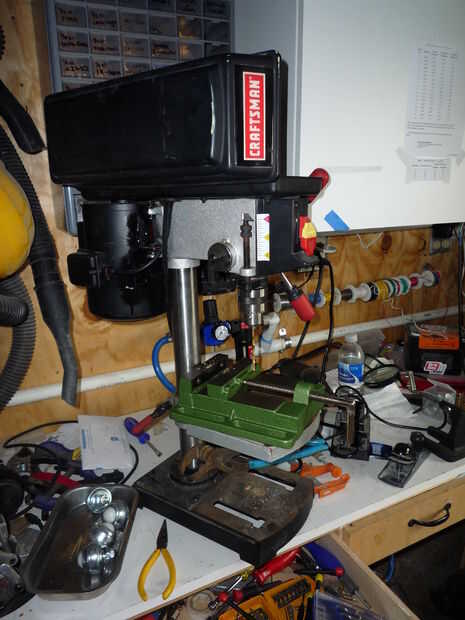 Has sentido alguna vez que el taladro tuvo grueso poder estadístico suficiente para sus necesidades. Lo hice, cuando descubrí que era incapaz de cortar con un agujero de 2" de la sierra a través de la madera contrachapada de 1/2". Tener más poder no sólo te hace que sentir como mas de un hombre, pero se rompen menos brocas y hacer agujeros más limpios de todos los tamaños. La prensa de que usar es un artesano 9" modelo 137.219090. Supuestamente tiene un motor de 1/3 hp, pero si asumimos que los amperios son un indicador justo de la energía, el motor 1/3hp que compré de Grizzly para éste es 5.3A en la misma tensión, por lo que una apuesta bastante segura de que eso es dos veces tan potente.