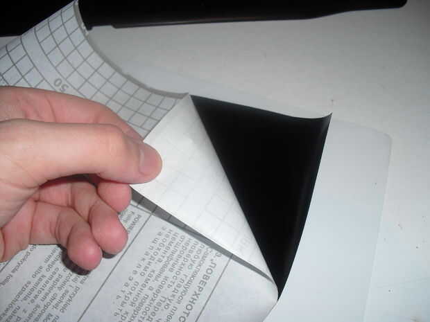 Pele un poco de un borde del soporte de papel en la película de vinilo.