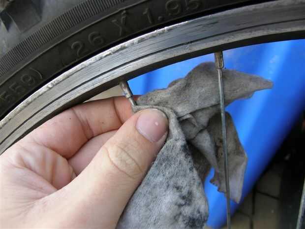 Comience con los radios, tomar su trapo y pellizcar todo el rayo y limpiar arriba y abajo. Un lado de los radios a la vez, es mucho más fácil que tratar de llegar a ambos lados de una sola vez.