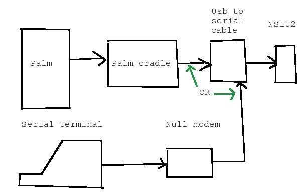 Nota: si hay no hay puertos para el cable usb-serial, necesitará un hub usb para conectar todos los dispositivos. Un centro que tiene su propia fuente de energía a trabajar mejor no para sobrecargar el NSLU2. Si utilizas un dispositivo rs232, también puede necesitar un cable de módem nulo o un adaptador para conectar al NSLU2.
