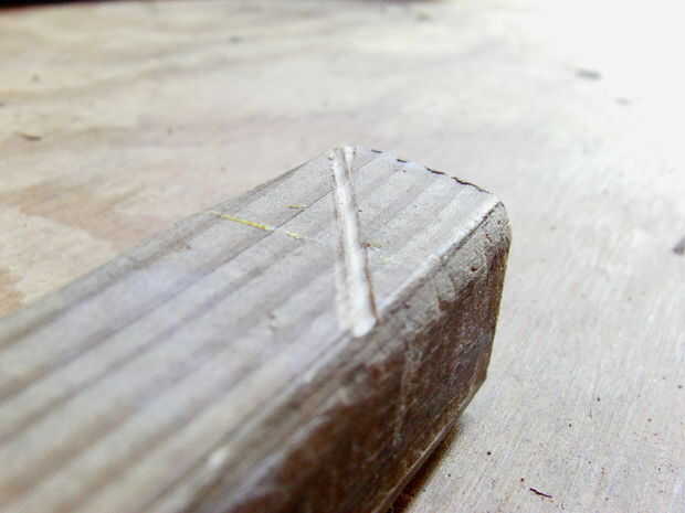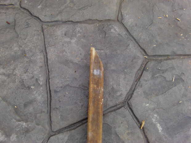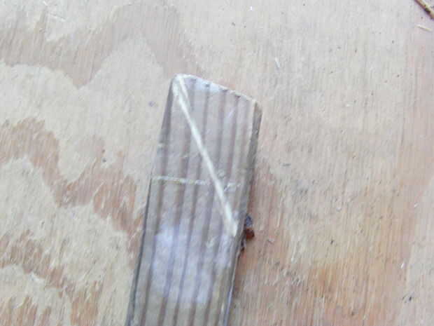 Una vez que haya elegido su material es el momento de hacer su juego. Si la longitud de la estaca no es proporcional a su figura, corte por lo que es. Necesitamos una forma de pegar la estaca en la tierra, así que lo corta en un ángulo como la foto #1 y 2, a continuación. Después de que haya completado este paso, meter la estaca en el suelo y prueba poniendo tu figura en el juego. Si crees que esto se ve bien, puede detener en este paso o continuar y añadir un cuerpo para tu figura.