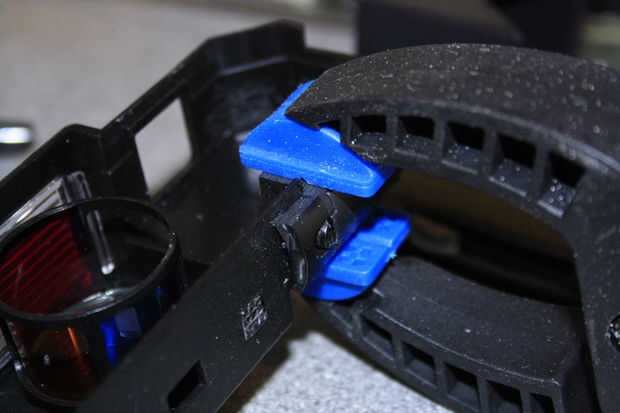 Usando sus alicates lentamente doblar el lado plástico de la veiwfinder hasta que se vuelve débil y se encaja a presión apagado.