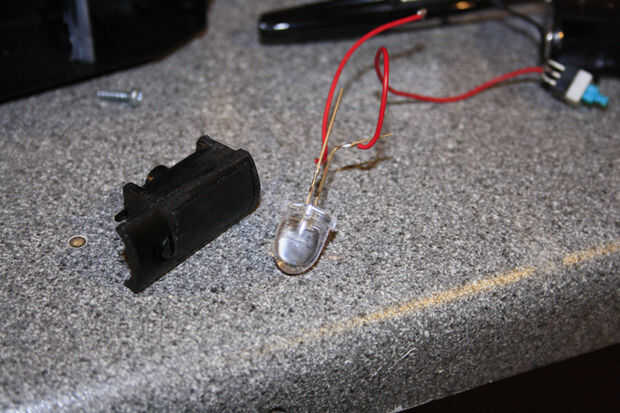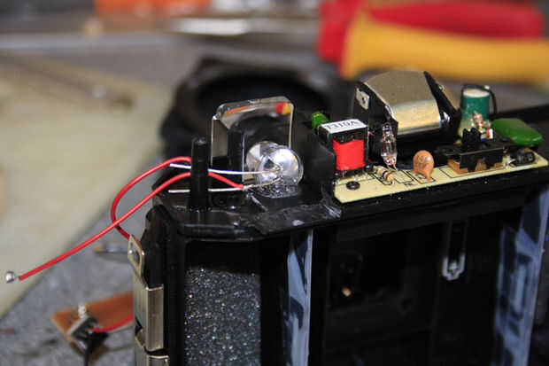 Usando la resina de epoxy pegamento LED, soporte de la batería y cambiar de lugar.