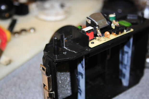 También perforé un agujero al lado del portapilas para mi empuje el interruptor del circuito.