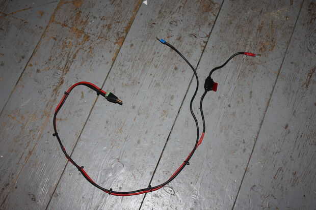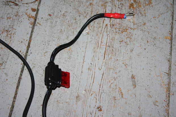 Así que hice un par de longitudes bastante largas de alambre a la batería al amplificador. Recogí un gato macho de alimentación donde se pueden atornillar los cables en la parte posterior. Estas cosas son geniales! Odio las tomas de corriente de soldadura.