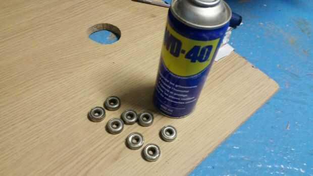 Quite todos los rodamientos de las ruedas, y dejó los empapados en grasa durante al menos 30 minutos. Después de eso le cand pone los rodamientos en las ruedas, poner también el anillo entre los camiones y las ruedas y las ruedas y la tuerca.