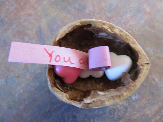 Consejo: Si quieres que sea una sorpresa completa doblarlas para que encajan completamente dentro de la cáscara. Si queremos tener algún tipo de idea de qué hacer. Luego puede rodar para arriba y deja una cola restante sobresalga de la parte inferior de la tuerca.