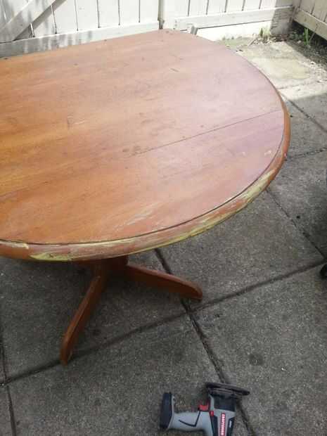 Gracias por leer mi Instructable! Así que recientemente se mudó a un apartamento nuevo y necesitaba algunos muebles. Mientras tuve la mesa ya, quería darle un nuevo comienzo para la nueva ubicación. Para ello, quería tomar la tabla hasta la madera pelada, darle a la tabla un acabado fresco y sellar con una capa transparente para protegerlo. La tabla también fue dañada un poco y uno a la dos caída hojas necesita una nueva pieza de soporte. Si tienes un proyecto o alguna otra pieza de muebles de madera que podrían utilizar algunos TLC, por favor lea en!