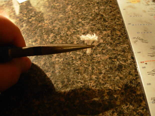1: cortar 1/3 de la duro poco 2:Fluff para arriba 3:Hold de pinzas (o simplemente sostener) 4 5:push medio camino en hacer shure su centrado luego empújelo completamente 6:color que con el marcador (opcional)