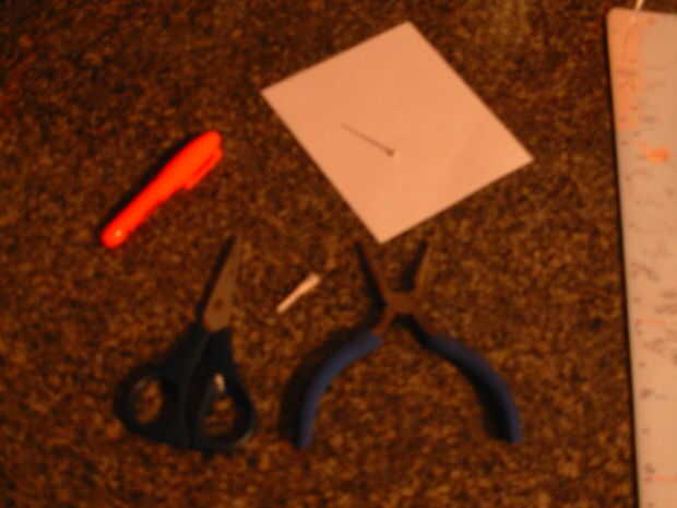para hacer un trabajo blowdart es muy simple. Todo lo que necesitas es.-gancho de metal--tijeras--la guita--cadena--cinta de doble palo--martillo--encendedor (opcional)-archivo-Paso 1: El eje Primero con las tijeras cortadas la percha a la longitud l
