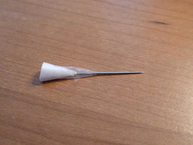 el cono de la aguja de la cinta y poco rodar alrededor en los dedos.