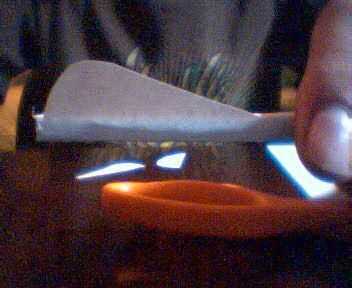 tomar el palillo del pegamento y aplicar pegamento a la sección de cola entera donde se montarán las aletas