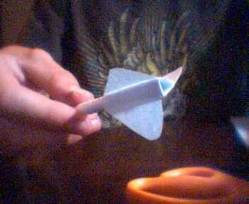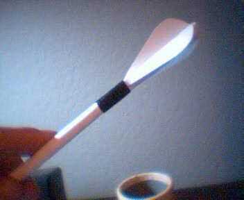 poco de cinta o tira de papel cubierto de pegamento y envolver las aletas en los extremos angostos de las aletas. Tenga cuidado en este paso, si el pegamento no está completamente seco o las aletas no fueron conectados lo suficiente en el paso anterior, se deslizará fuera de lugar y no se alinearán correctamente