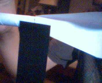 se aplican las aletas una a la vez para que sean rectos y alinean con la parte superior de cada lado del tubo triangular. Presione hacia abajo las aletas por lo que se pegan abajo buena