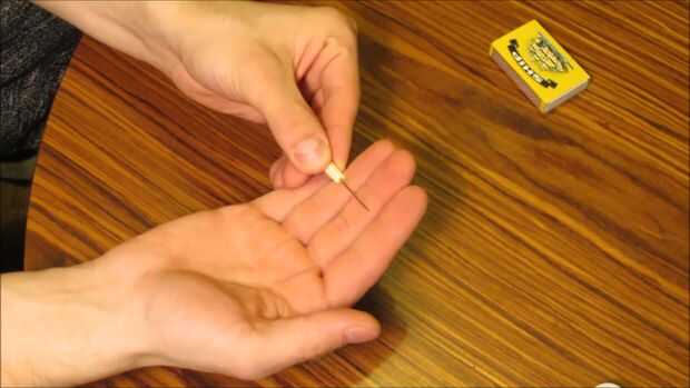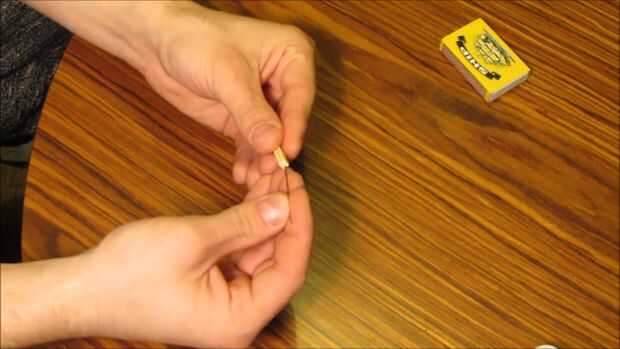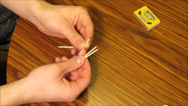 elegir a 4 partidos y ponerlos juntos, por lo que las cabezas están en un lado. después de tak una aguja y colocarlo entre los partidos justo en el centro frente a jefes de partido.