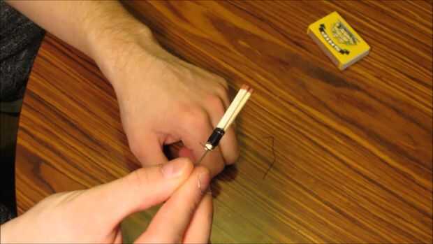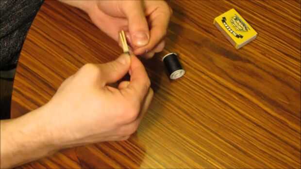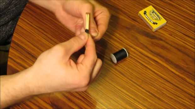 Envuelva el cordón alrededor mantenga fósforos y aguja en el lugar y atar los extremos.
