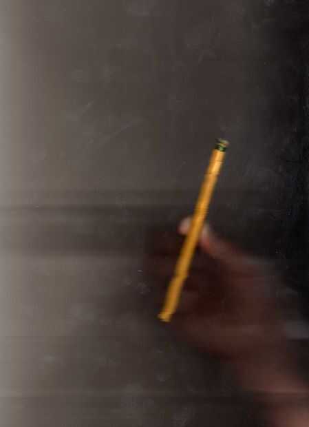 tomar el lápiz y utilizar un siscor para recortar el borrador frente a la punta. Si ves un pequeño agujero donde el borrador era entonces usted cortar profundo toma enough.then de la tip.you debe tener dos uno uno uno y un poco grande del agujero.