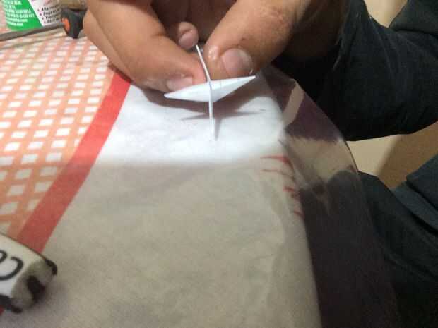 Primero cortaremos un cuadrado de papel de 3 x 3 cm el cual doblaremos para acer un triángulo de un lado y viceversa después a la mitad de cuadrado tal como se muestra en la imágenes una manera de hacer la veleta del dardo. les recomiendo utilicen acetato así no se va a dañar la veleta si deciden servicios los dardos