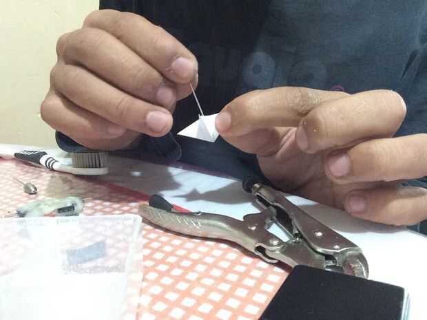 Luego merecemos la aguja con el peso muerto al papel como se muestra en las imágenes.