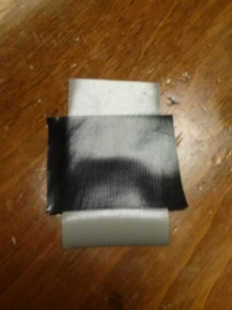 Tomar dos tiras de tres pulgadas de la cinta y pégalos lado adhesivo en la parte adhesiva en una cruz. Luego doblar hacia abajo de tres de las pestañas como se muestra en las fotos anteriores. Luego doblar el pliegue después de esquina a esquina Plaza la última ficha para sellar el cono