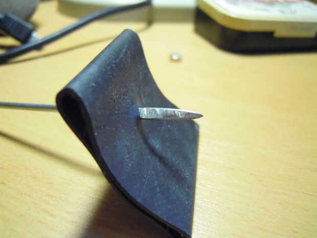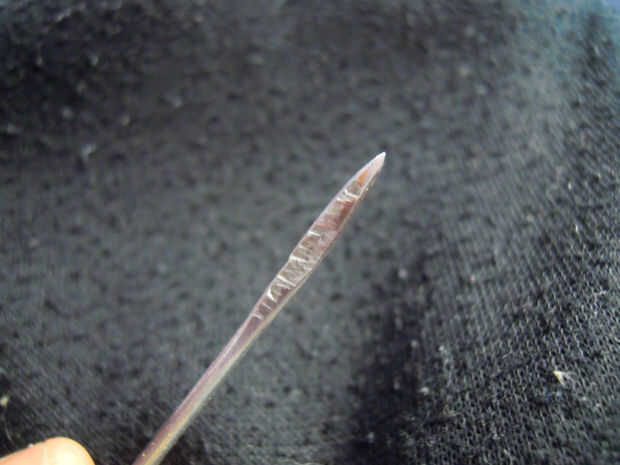 • En primer lugar, lijar el extremo plano de su dardo en forma de hoja.