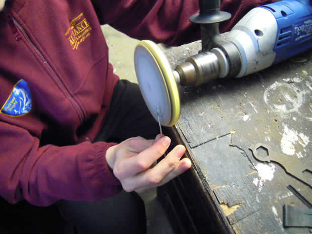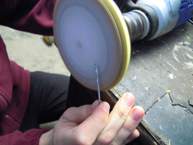 • Tener en cuenta - seguridad primero! Al lijar, nunca sostenga el rayo con el extremo afilado apuntando en su cuerpo y siempre asegúrese de que ese segmento de papel de lija que utiliza para lijar es mover (o rotación) lejos de usted. Si no puede conseguir el habla pegado, rebotan y herirle a usted!!!!!!