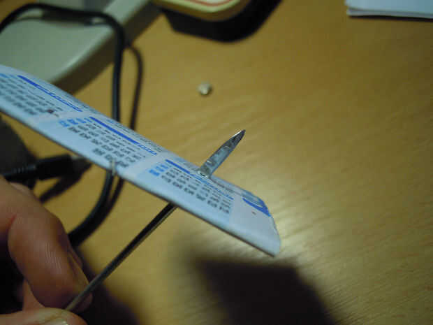 • Tratar de empujar el dardo que se seleccione una pieza de cartulina, una manzana o cualquier otro material relativamente suave, se debe ir sin problemas.