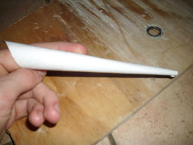 3. convertirlo en un cono de balanceo para arriba, esto no debe ser demasiado apretado, solo meter el dedo índice en el agujero y encontrar el final, ruede para arriba y será largo y delgado, como usted quiere, use la cinta fina y cinta para arriba firmemente.