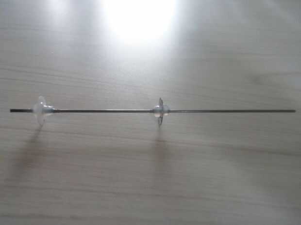 Pegamento caliente estos discos unas pocas pulgadas aparte en una longitud corta del alambre como se muestra en las fotos anteriores.