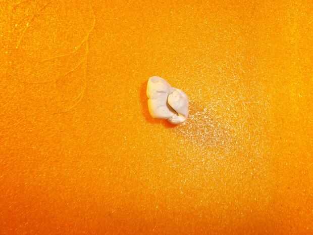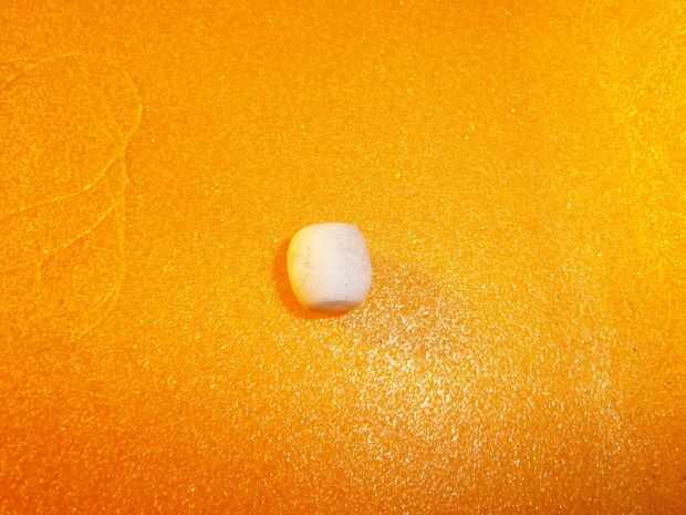 A continuación rodarla alrededor en tus manos muy limpias hasta que se ve un poco como un malvavisco mini. (Tenía la Skulpey color blanco) Es el tamaño y la forma que desee.