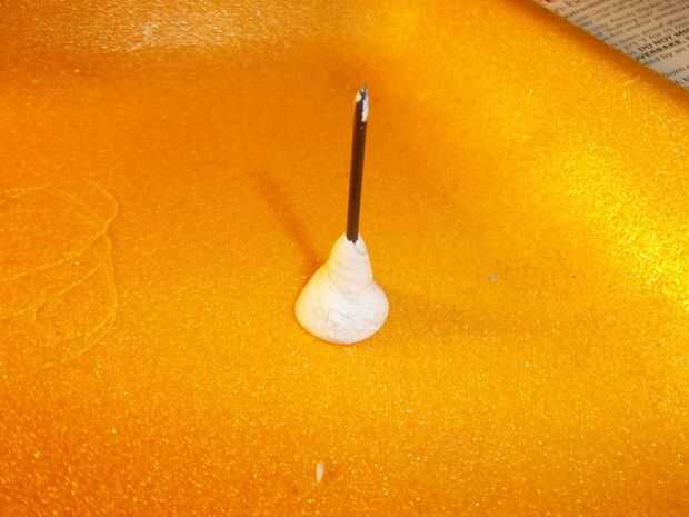 Formar la bellota en forma de cono con el extremo puntiagudo de la uña que salen el extremo puntiagudo del cono.
