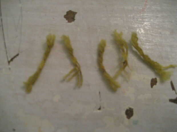 usted necesita obtener algunos hilados para el equilibrio y cortar 5 piezas de 1 pulgada de largo se le resbaló en la grieta aparece en el ultimo paso...