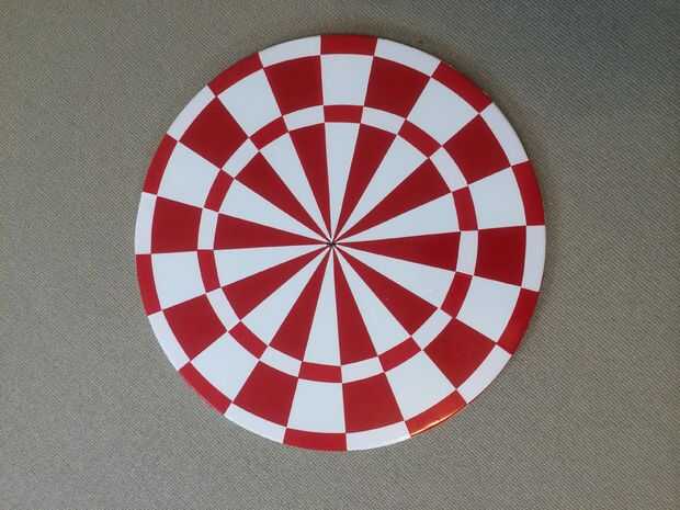 Después de que ellos ha cortado ambos hacia fuera, coloque en su tablero de dardos del mismo modo como se muestra en las fotos. Las piezas más largas para el círculo externo o "doble anillo" y las piezas más cortas para el círculo interno o "triple corona". No olvide alternar colores y utilizar la escobilla de goma.