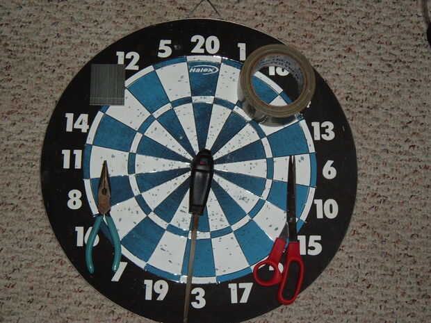 un pequeño dardo portátil que penetrarán en la madera de 40 pies cuando... ADVERTENCIA esto es probablemente ilegal y no debe ser tirado en cualquiera. Si alguno se lastima jugando con esta llamada arma 1800 no doy un culo ratas... falla.Paso 1: mate