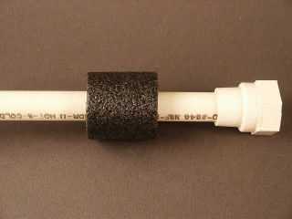 3. cortar una sección amplia de 2" de espuma y envolver alrededor del tubo CPVC 1' desde el adaptador hembra. Esto forma el soporte de dart.
