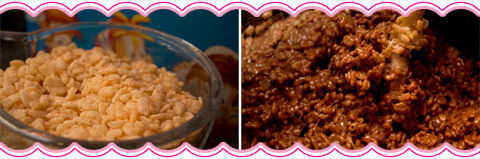 Revolver hasta 1 taza de maní de chocolate oscuro de mantequilla (otra vez, si usted no puede encontrar el chocolate oscuro, hará regular), 1-1/2 cucharaditas de extracto de vainilla y 1/4 cucharadita de sal. Mezclar bien. Agregar 8 tazas de Rice Krispies, alrededor de una taza a la vez y remover hasta que están cubiertas de forma uniforme.