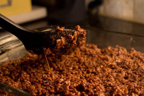 Retire la olla del calor y revuelva en de su picada arriba oscuro chocolate Reese mantequilla de maní y una taza de trocitos de chocolate negro (y si no encuentras chocolate oscuro... adivinaron lo... uso regular). Mezcle hasta que los trozos de chocolate se encuentran dispersos a lo largo de la mezcla pero no con la mezcla para que se derritan las piezas.